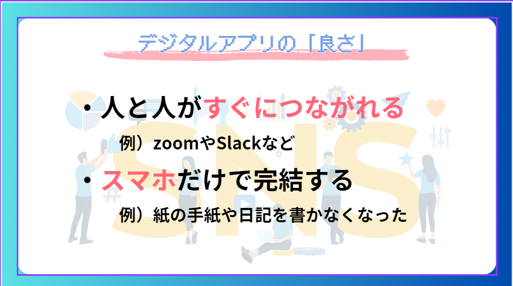 アナログ日記の良さを残しつつ、デジタルの便利さを融合するアプリを開発した。