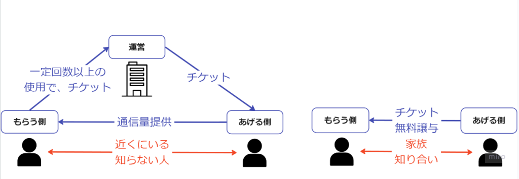 通信容量を提供した見返りをポイントではなく、「通信容量を提供してもらえるチケット」に変更する。