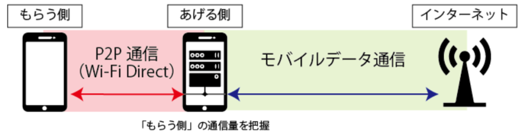 テザリングではなく、P2P通信によって通信容量を共有できるようにする。