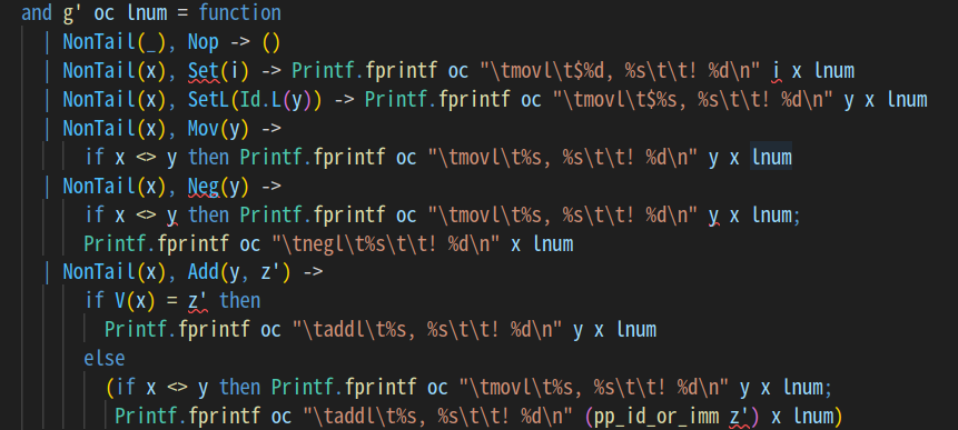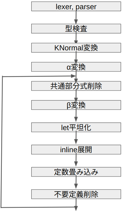 コンパイラ係としての目標は、OCaml言語で書かれたプログラムの最適化をできるだけ行って生成されるアセンブリの命令数を減らすことです。
