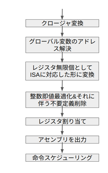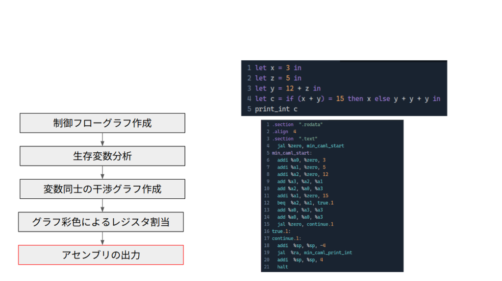 レジスタ割当を最適化するためにグラフ彩色によるレジスタ割当を行った。