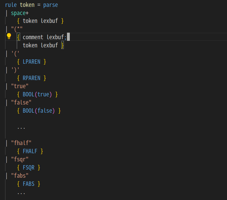 まず、読み込みたい言葉(token)をlexer.mllに定義。